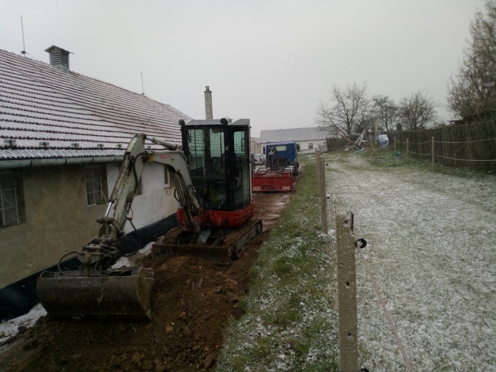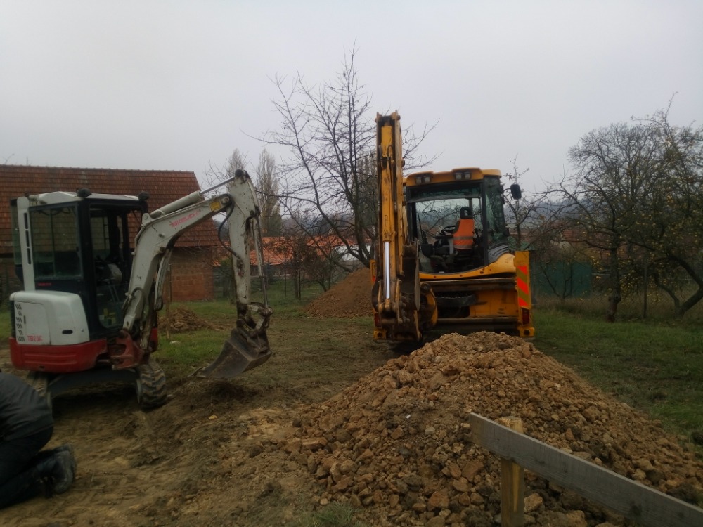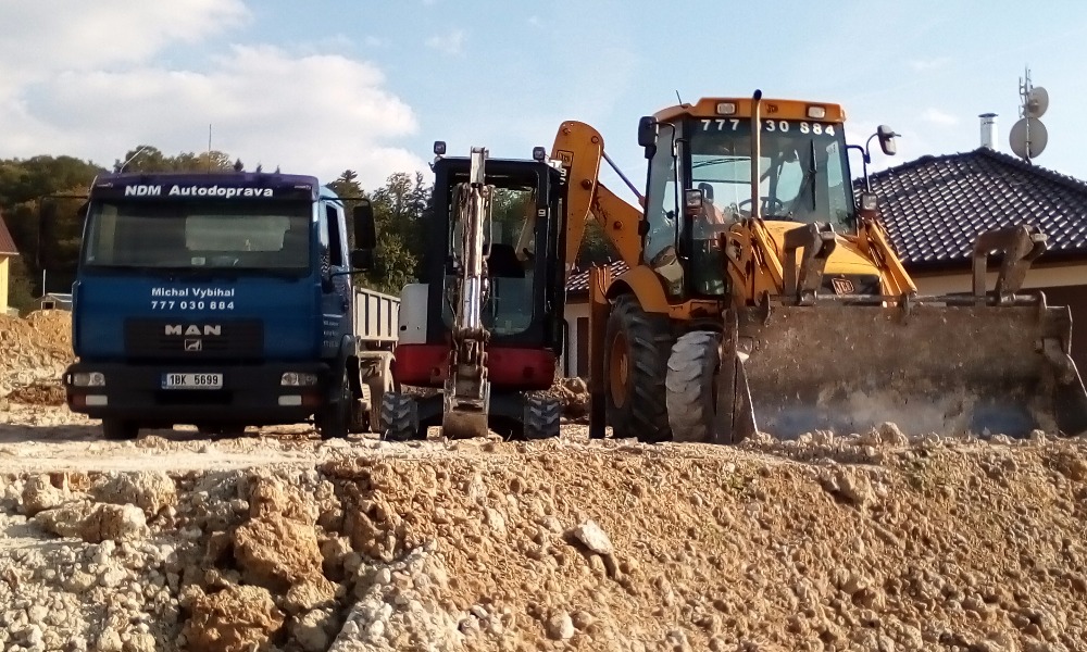Zemní práce provádíme minibagrem a traktorbagrem JCB, včetně paletizačních vidly - lžice 30,40,50,60,80,90 a svahovací 150