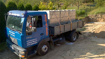 sutě, štěrky, písky, uhlí, dřevo, zeminu, stavební stroje, betonu, stavebního materialu